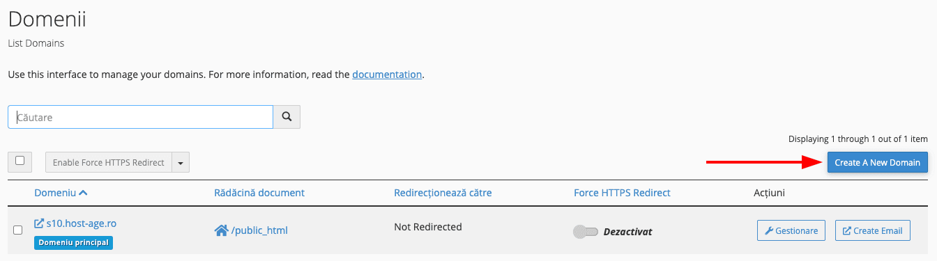 Pentru a crea subdomenii accesați cPanel la https://cpanel.domeniul-tau.ro apoi clic pe butonul Domenii