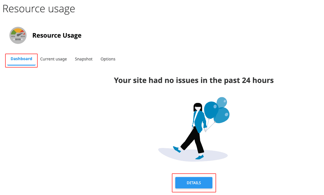 2. Derulează în jos și caută secțiunea Statistici în partea dreaptă a ecranului. Acolo vei vedea utilizarea actuală, în timp real, a resurselor site-ului tău web.