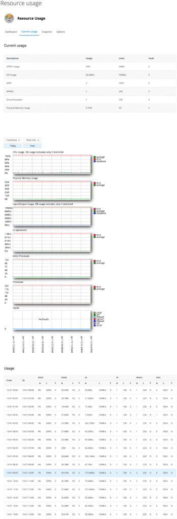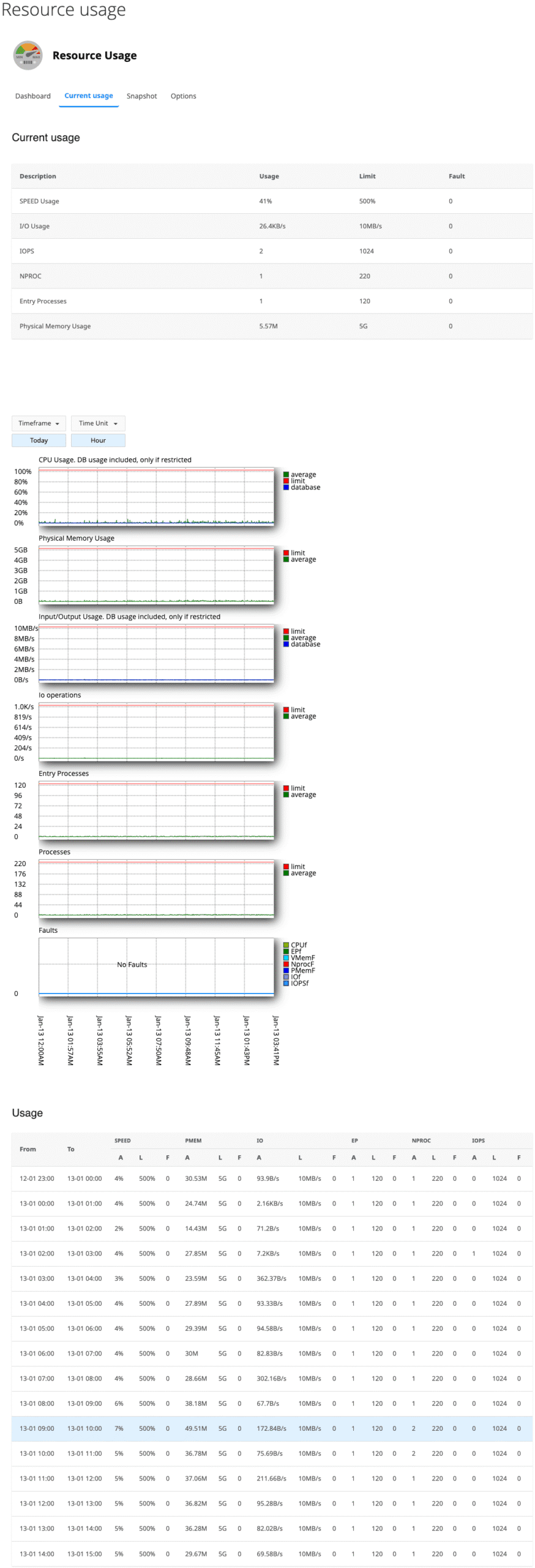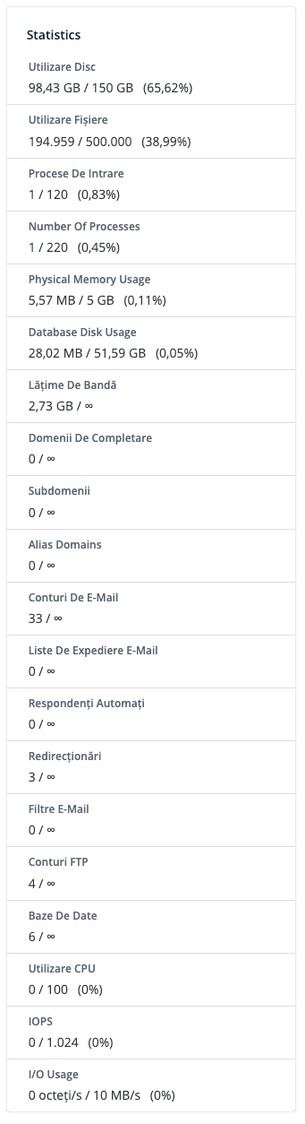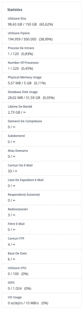 În această pagină poți vedea consumul de resurse actual precum și istoricul resurselor consumate.