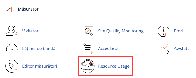 În cPanel la secțiunea Măsurători dă clic pe butonul Resource Usage