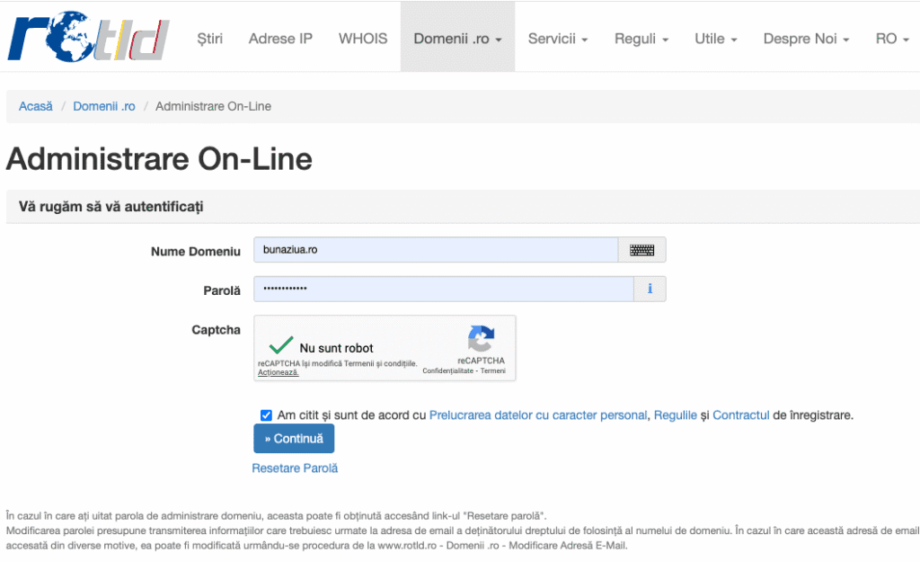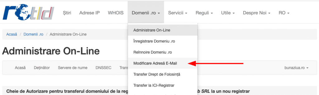 Atenție! Dacă nu mai ai acces la adresa de e-mail cu care a fost înregistrat domeniul, vezi jos în această pagină cum poți să o modifici.
