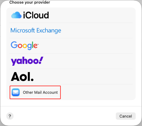 2. Automat în partea de jos vor apărea opțiuni de configurare automată pentru diverse servicii de e-mail. Mergi în partea de jos a ferestrei și alege Other Mail Account.