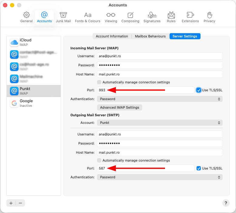 Incoming și Outgoing Mail Server: mail.domeniul-tau.ro